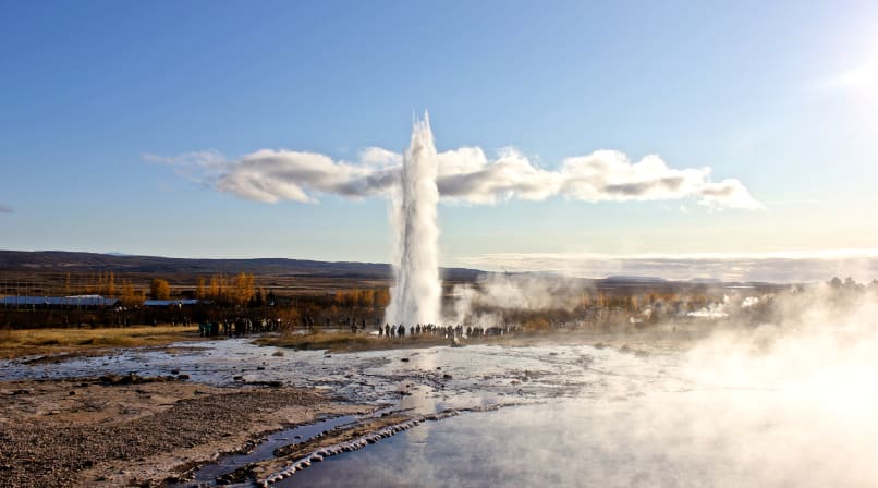 The Golden Circle Classic is our bestselling day tour! Follow in the footsteps of the Vikings as you walk down into the rift valley where the American and Eurasian continental plates are literally pulling apart at Þingvellir National Park, a UNESCO World Heritage Site and the birthplace of the oldest existing parliament. Witness the steaming geothermal springs as the ground trembles and hot water spouts spectacularly skywards from the famous Strokkur Geyser at the home of the one-and-only original geyser and Iceland's most iconic natural attraction. Experience the magnificence and power of Gullfoss Waterfall, a set of glacial river cascades falling 32 meters into a narrow canyon with a thunderous roar. The best part, this is all done within 8 hours!