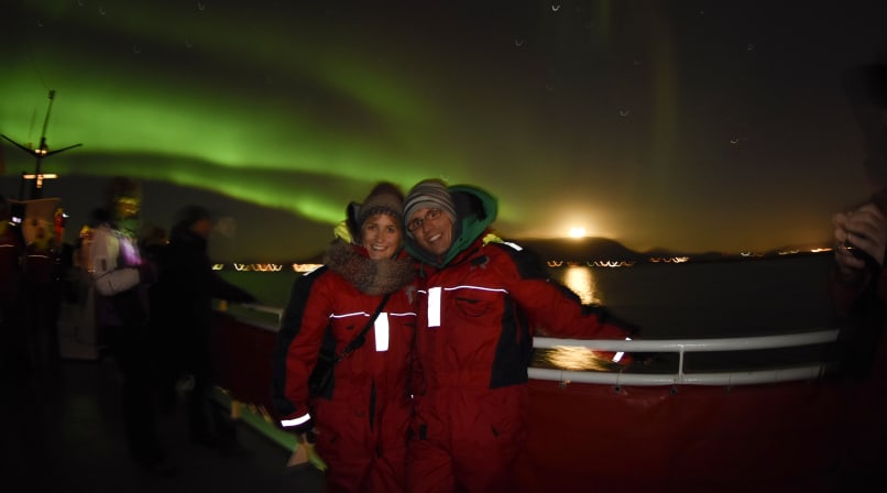 Enjoy the comfort of our heated indoor areas, an onboard café, and a 360° viewing platform for panoramic views. Our knowledgeable aurora guides will enhance your experience by providing insights into the lights and answering any questions. Warm overalls are available for borrowing, but don’t forget to bring a hat and gloves.