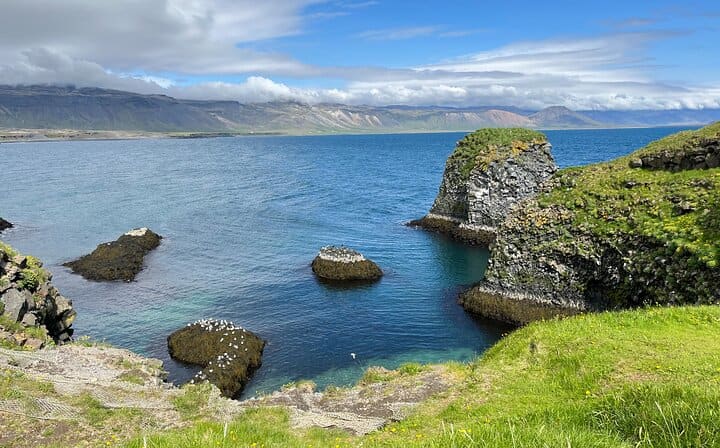 5. Arnarstapi Fishing Village: Immerse yourself in the charm of Arnarstapi, a quaint fishing village nestled amidst towering sea cliffs and rugged coastlines. Explore its winding paths and historic landmarks, soaking in the rich maritime heritage of this picturesque enclave.