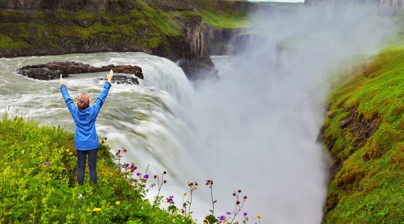 The Golden Circle Classic is our bestselling day tour! Follow in the footsteps of the Vikings of old as you walk down into the rift valley where the American and Eurasian continental plates are literally pulling apart at Þingvellir National Park, a UNESCO World Heritage Site and the birthplace of the oldest existing parliament. Witness the steaming geothermal springs as the ground trembles and hot water spouts spectacularly skywards from the famous Strokkur Geyser at the home of the one-and-only original geyser and Iceland's most iconic natural attraction. Experience the magnificence and power of Gullfoss Waterfall, a set of glacial river cascades falling 32 meters into a narrow canyon with a thunderous roar. The best part, this is all done within 8 hours!